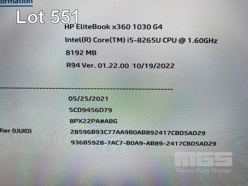 LAPTOP, HP ELITEBOOK x360 1030 G4 (8PX22PA), CORE i5 8265U (8TH GEN) @ 1.6GHz, 8GB DDR4 RAM, 256GB NVMe M.2 SSD, 13.3" TOUCHSCREEN (1920x1080), INTEL UHD GRAPHICS 620, Wi-Fi, BLUETOOTH, WINDOWS 11 PRO INSTALLED, STYLUS & USB-C POWER SUPPLY (NOTE: TOUCHSCREEN FAULT - NON RESPONSIVE) S/N:5CD9456D79