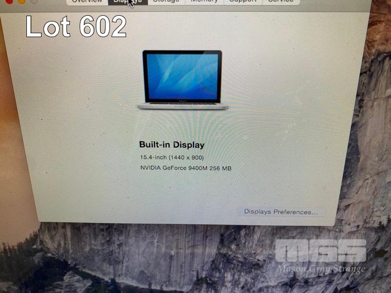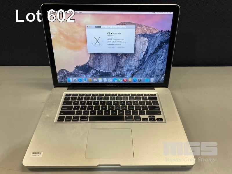 LAPTOP, APPLE MACBOOK PRO (A1286), CORE 2 DUO T9400 @ 2.53GHz, 4GB DDR3 RAM, 320GB SATA HDD, DVD-RW, 15.4" WIDESCREEN (1440x900), MAC OS 10.10 INSTALLED & POWER SUPPLY S/N:W88456881GN