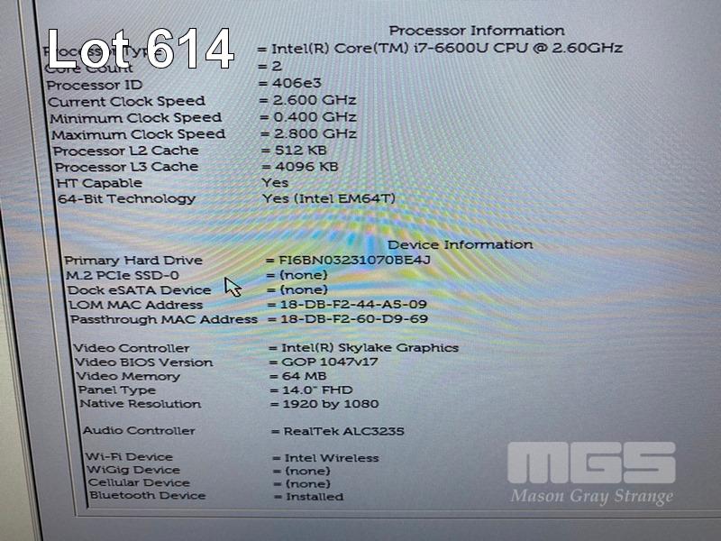 LAPTOP, DELL LATITUDE E7470, CORE i7 6600U (6TH GEN) @ 2.6GHz, 16GB DDR4 RAM, 512GB M.2 SSD, 14" WIDESCREEN (1920x1080), INTEL SKYLAKE GRAPHICS, Wi-Fi, BLUETOOTH, WINDOWS 10 HOME INSTALLED, DOCKING STATION & POWER SUPPLY (NOTE: NO BATTERY) S/N:F3CDPF2