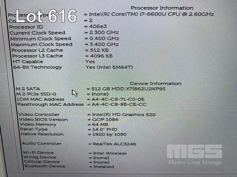LAPTOP, DELL LATITUDE 7480, CORE i7 6600U (6TH GEN) @ 2.6GHz, 16GB DDR4 RAM, 512GB M.2 SSD, 14" WIDESCREEN (1920x1080), INTEL HD GRAPHICS 520, Wi-Fi, BLUETOOTH, WINDOWS 10 HOME INSTALLED & POWER SUPPLY (NOTE: BATTERY NOT CHARGING) S/N:8K2J3M2