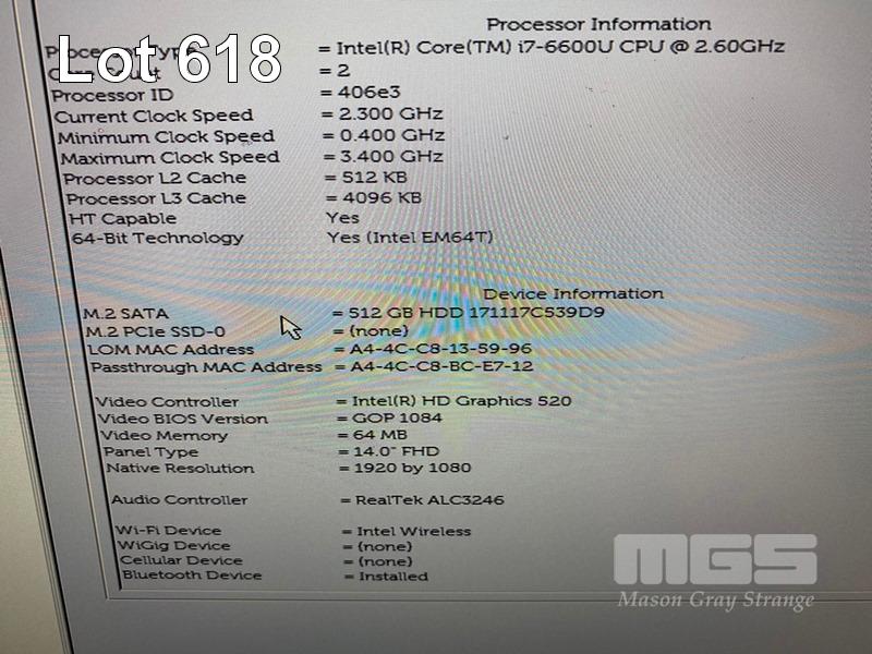 LAPTOP, DELL LATITUDE 7480, CORE i7 6600U (6TH GEN) @ 2.6GHz, 16GB DDR4 RAM, 512GB M.2 SSD, 14" WIDESCREEN (1920x1080), INTEL HD GRAPHICS 520, Wi-Fi, BLUETOOTH, WINDOWS 10 HOME INSTALLED & POWER SUPPLY (NOTE: NO BATTERY, MARKS ON SCREEN, ENTER KEY FAULT) S/N:GKRM9H2