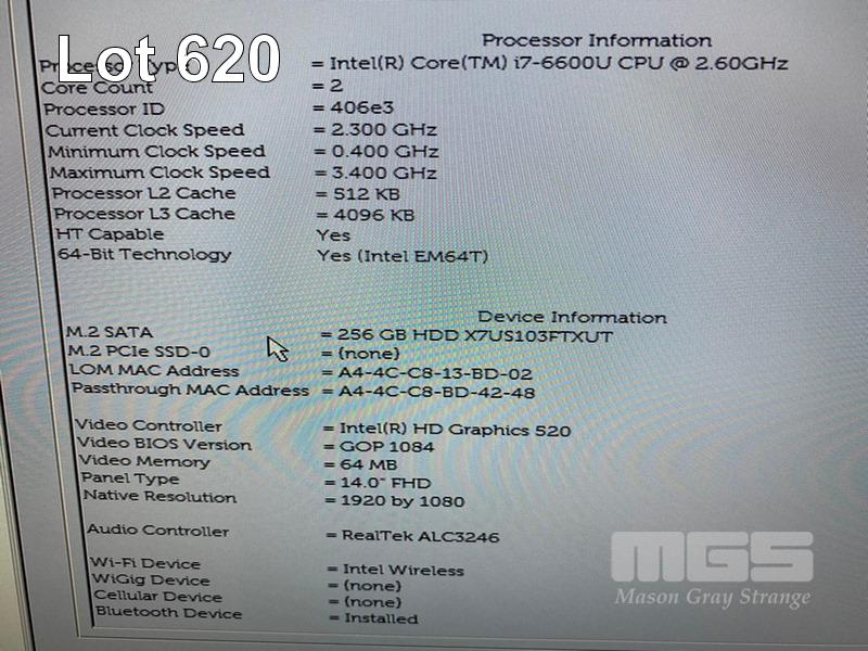 LAPTOP, DELL LATITUDE 7480, CORE i7 6600U (6TH GEN) @ 2.6GHz, 16GB DDR4 RAM, 256GB M.2 SSD, 14" WIDESCREEN (1920x1080), INTEL HD GRAPHICS 520, Wi-Fi, BLUETOOTH, WINDOWS 10 HOME INSTALLED & POWER SUPPLY (NOTE: NO BATTERY, CHIP ON SCREEN) S/N:CFYM9H2