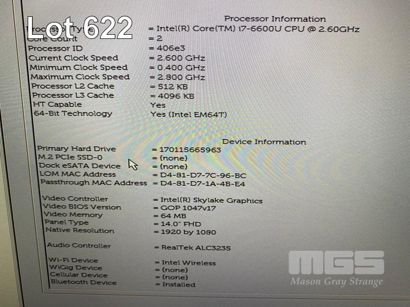 LAPTOP, DELL LATITUDE E7470, CORE i7 6600U (6TH GEN) @ 2.6GHz, 16GB DDR4 RAM, 512GB M.2 SSD, 14" WIDESCREEN (1920x1080), INTEL SKYLAKE GRAPHICS, Wi-Fi, BLUETOOTH, WINDOWS 10 HOME INSTALLED, DOCKING STATION & POWER SUPPLY (NOTE: BATTERY NOT CHARGING) S/N:4QFMVF2