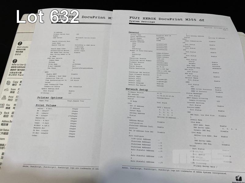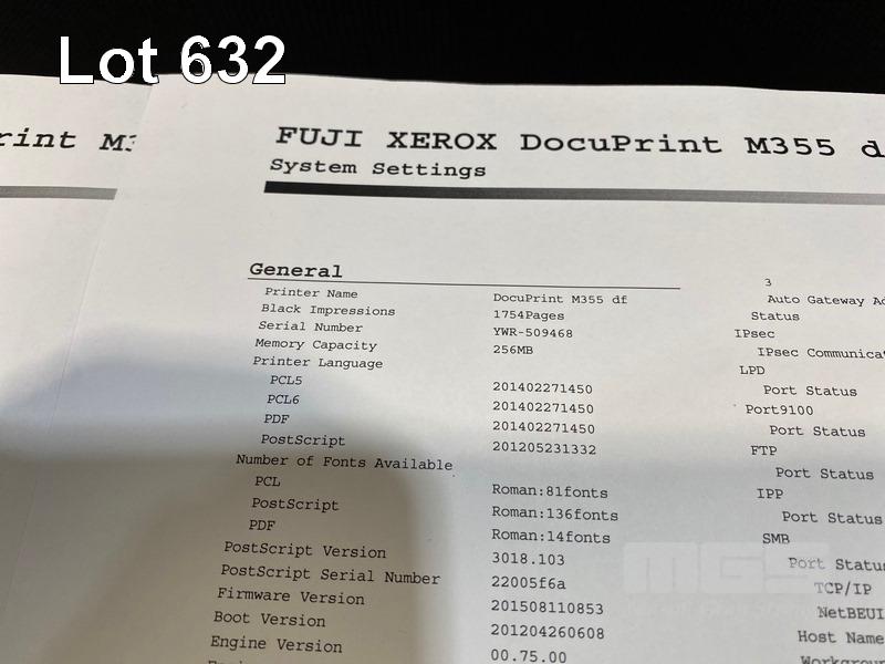 PRINTER, FUJI XEROX DOCUPRINT M355 df MFC LASER, 1,754 B&W PAGES (TEST PAGE ATTACHED) S/N:YWR509468