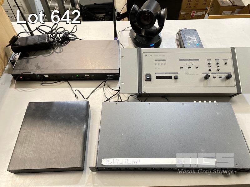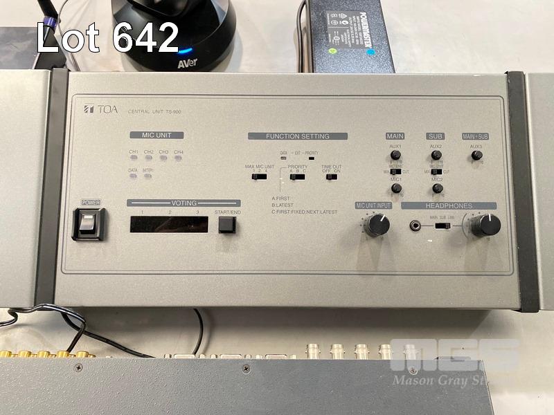 ASST AV EQUIPMENT INCLUDING EXTRON MPS SERIES MEDIA PRESENTATION SWITCHER, TOA CENTRAL UNIT TS-900, AVER CAM520 PRO CONFERENCE CAMERA, MIPRO ACT-707DE WIRELESS RECEIVER, SURE P300-IMX AUDIO CONFEENCE PROCESSOR, QTY TOA BP-900 BATTERIES & CHARGING STATIONS