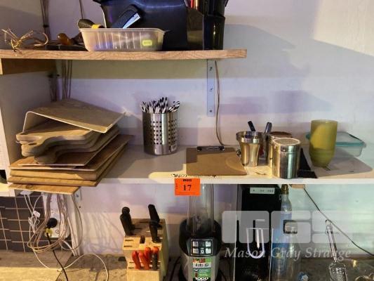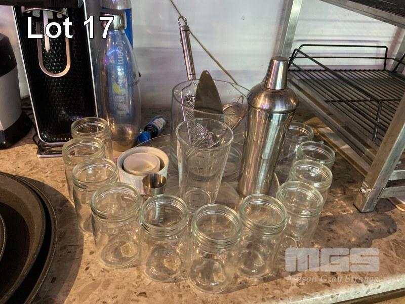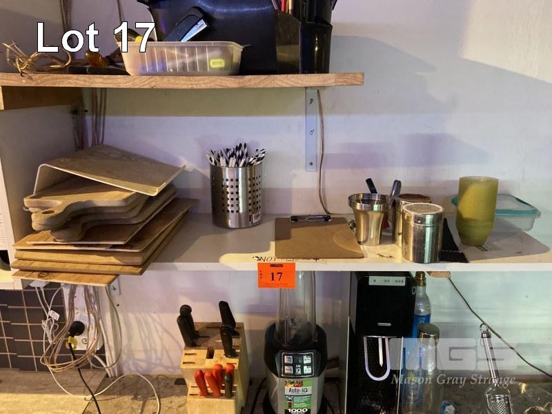 ASSORTED BAR ACCESSORIES, TRAYS, BLENDER, SODA STREAM, COCKTAIL KIT