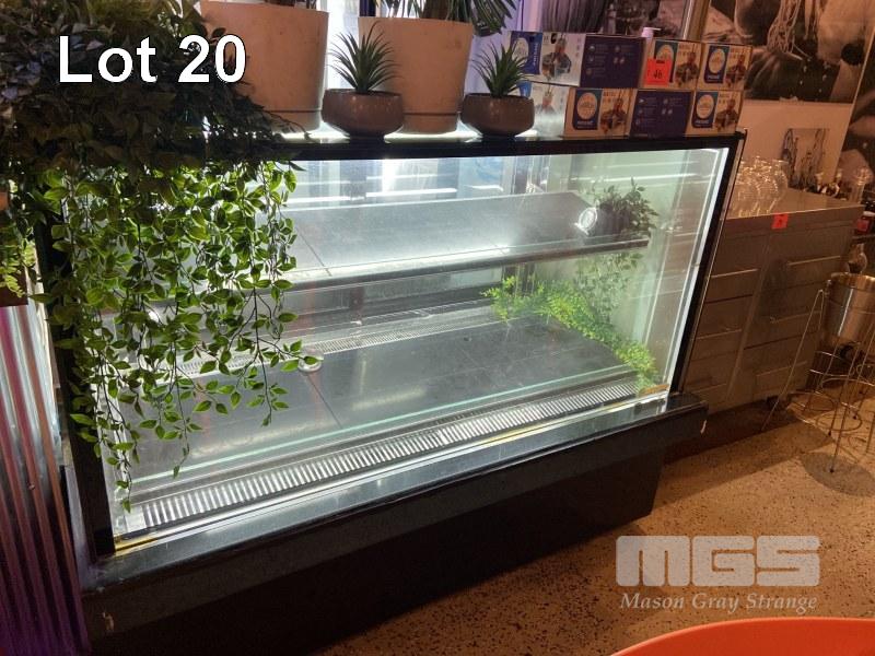 CAKE DISPLAY FRIDGE, GLASS FRONT REAR SLIDING GLASS DOOR ACCESS, 420 LITRE 1500 (L) x 730 (D) x 1200mm (H) ILLUMINATED, 2 TIER