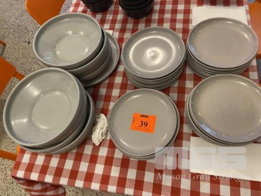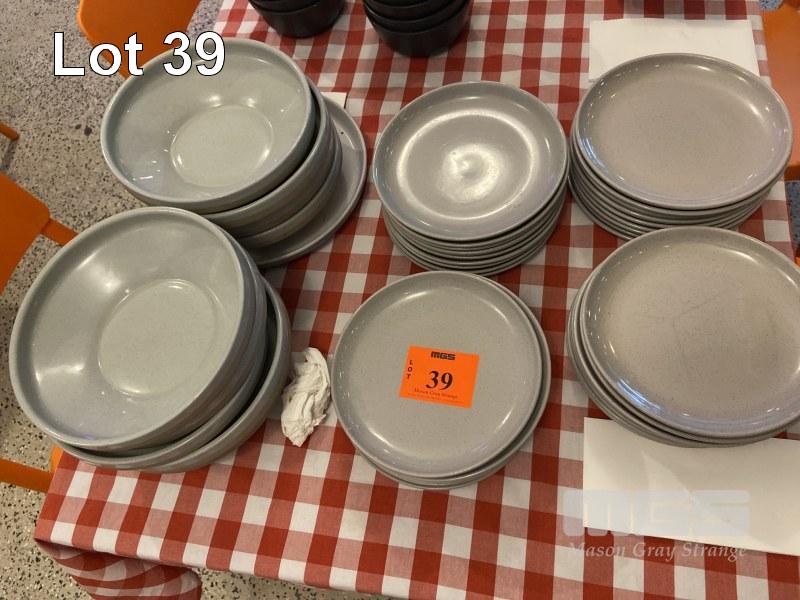 9 x TABLECRAFT PORCELAIN BOWLS, GREY, 220mm, 3 x 200mm & 3 x PLATES