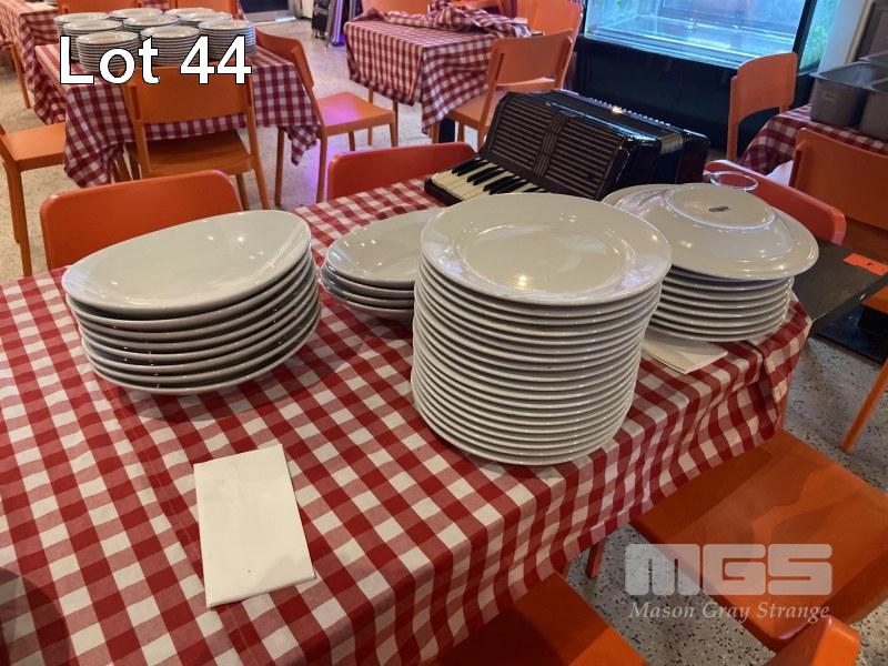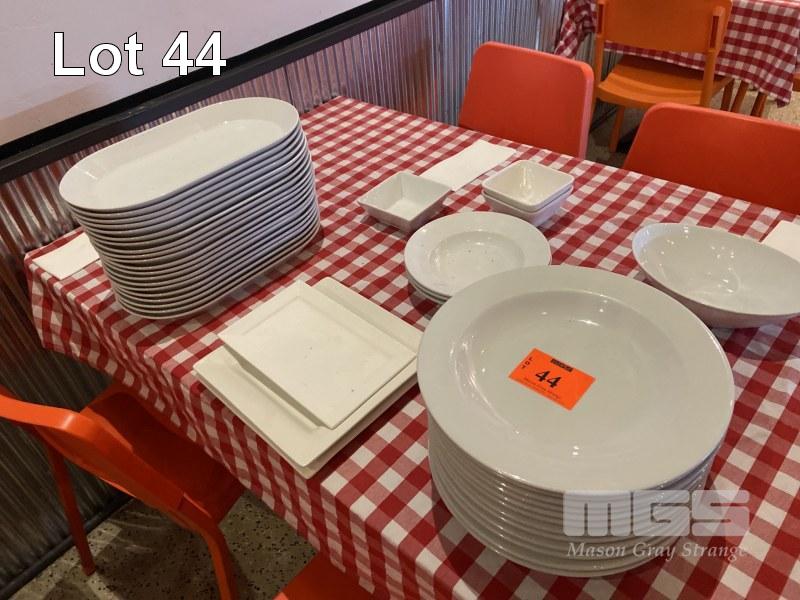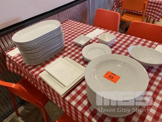 ASSORTED GAGANIS WHITE PORCELAIN WARE INC 20 x RECTANGULAR SERVING TRAY, 380 x 210mm, 22 x SOUP BOWLS, 295mm DIAMETER, 19 x PLATES, 280mm, 12 x SERVING BOWLS, 305 x 220mm & ASSORTED EXTRAS