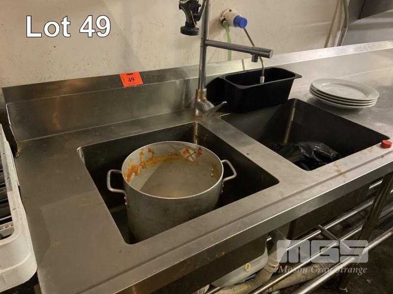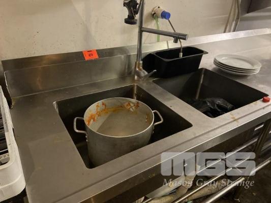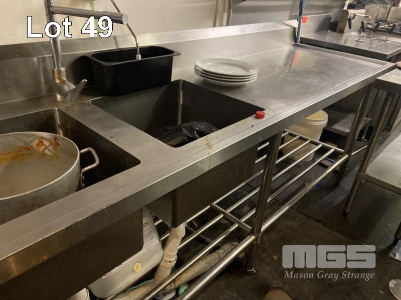 TWIN DEEP BOWL KITCHEN SINK, 2400 x 700mm WITH DISHWASH SPRAY (BUYER TO REMOVE)