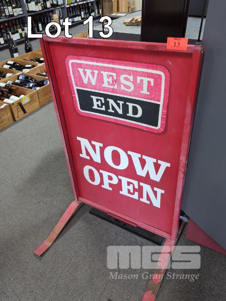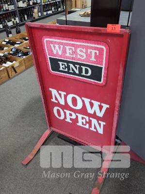CLASSIC WEST END BRANDED "NOW OPEN" STEEL T-BOARD SIGN.