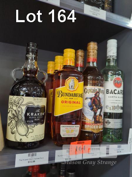 ASSORTED RUM (PART SHELF) 1X KRAKEN BLACK RUM 700ML 3 X BUNDABERG ORIGINAL RUM 700ML 3 X CAPTAIN MORGAN ORIGINAL SPICED GOLD RUM 700ML 1 X BACARDI RUM 700ML