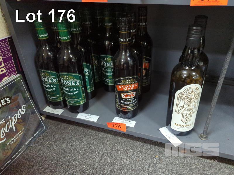 ASSORTED GINGER WINE & MEAD (PART SHELF). 9 X STONES GREEN GINGER WIND 750ML. 3 X STONES MAC GREEN GINGER WINE 750ML. 2 X MAXWELL MEAD 750ML