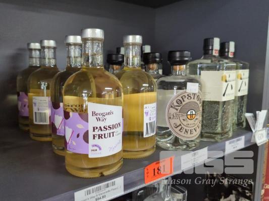 ASSORTED GIN (PART SHELF) 5 X BROGAN'S WAY PASSION FRUIT GIN LIQUEUR 500ML. 3 X BREWBOYS KOPSTOOT JENVER GIN 500ML. 4 X ROKU GIN 700ML.