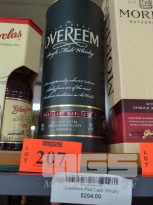 1 X OVEREEM PORT CASK MATURED SINGLE MALT WHISKY 700ML. * TASMANIA *