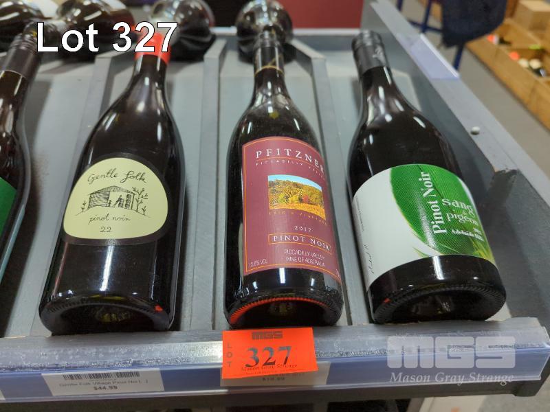 ASSORTED ADELAIDE HILLS PINOT NOIR (PART RACK & FLOOR) 34 X 2021 MICHAEL HALL SANG DE PIGEON PINOT NOIR 750ML (10 X BOTTLES + 2 X PACKS (SIX) UNBROKEN). 17 X 2017 PFITZNER PINOT NOIR 750ML (11 X BOTTLES + SINGLE PACK (SIX) UNBROKEN) 18 X 2022 GENTLE FOLK VILLAGE PINOT NOIR 750ML