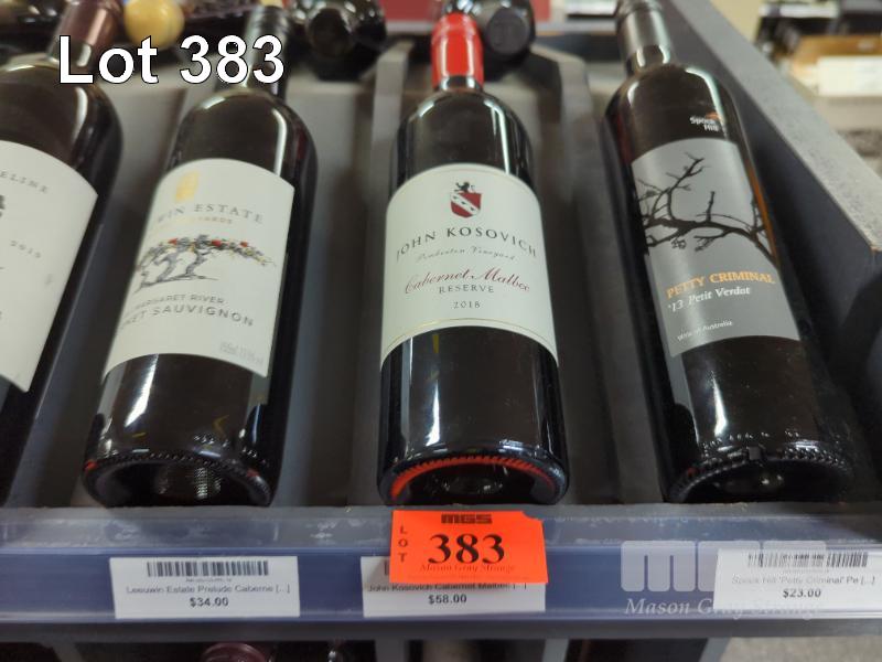 WESTERN AUSTRALIAN CABERNET SAUVIGNON AND A CABERNET BLEND PLUS ONE SOUTH AUSTRALIAN (PART RACK) 8 X 2019 LEEUWIN ESTATE PRELUDE CABERNET SAUVIGNON 750ML 6 X 2018 JOHN KOSOVICH CABERNET MALBEC RESERVE 750ML 3 X 2013 SPOOK HILL "PETTY CRIMINAL" PETIT VERDOT 750ML.