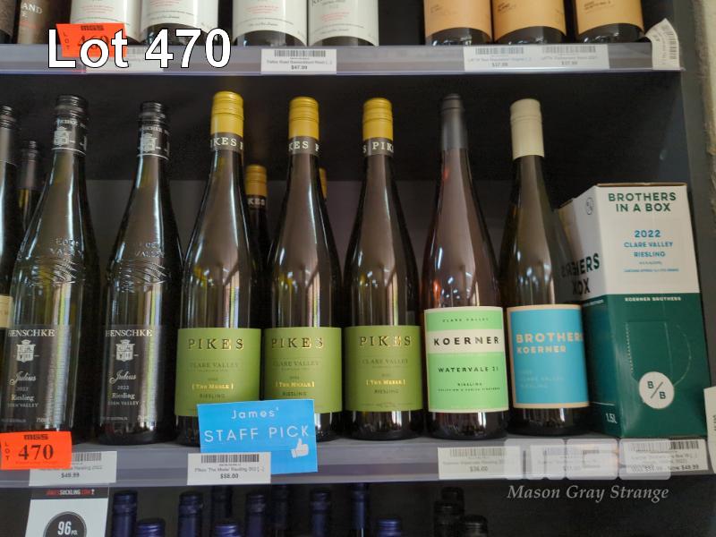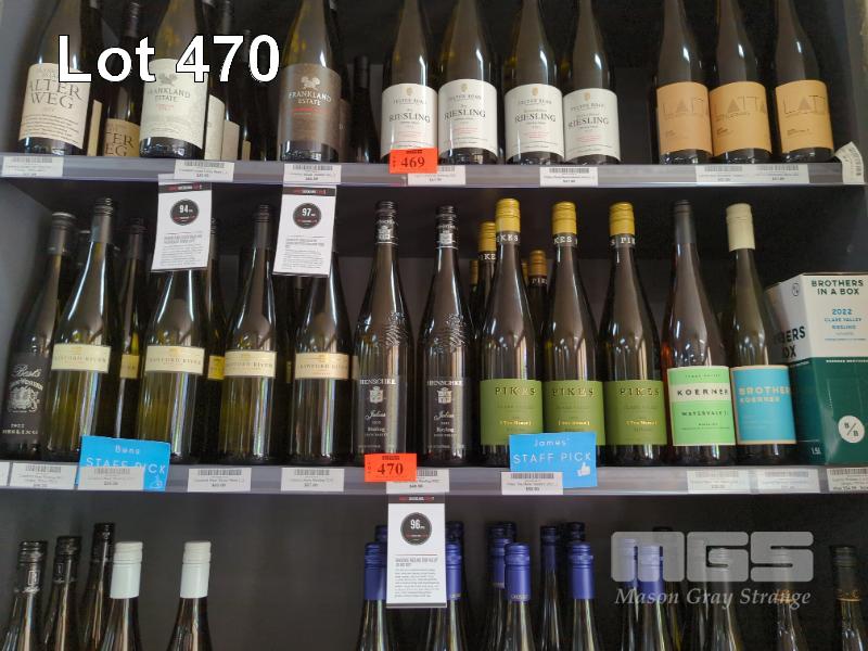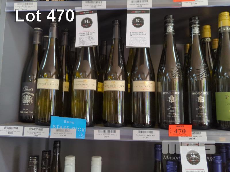 ASSORTED RIESLING (1 X SHELF) 7 X 2022 BESTS RIESLING 750ML 1 X 2015 CRAWFORD RIVER RIESLING 750ML 6 X 2020 CRAWFORD RIVER RIESLING 750ML 3 X 2021 CRAWFORD RIVER RIESLING 750ML 8 X 2022 PIKES "THE MERLE" RIESLING 750ML 1 X 2021 KOERNER WATERVALE RIESLING 750ML 1 X 2022 KOERNER BROTHERS RIESLING 750ML 2 X 2022 KOERNER "BROTHERS IN A BOX" RIESLING 1.5L 7 X 2015 CRAWFORD RIVER "STRATA" RIESLING 750ML 2 X 2022 HENSCHKE JULIUS RIESLING 750ML