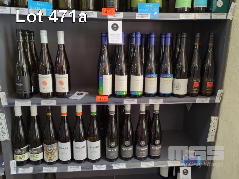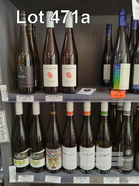 ASSORTED RIESLING (2 X SHELVES) 3 X 2022 PAULETT CLARE VALLEY RIESLING 750ML 1 X 2022 ADELINA RIESLING WATERVALE 750ML 1 X 2022 VICKERY RIESLING EDEN VALLEY 750ML 1 X 2005 REILLYS WATERVALE RIESLING 750ML 3 X 2022 REILLYS RIESLING 750ML 2 X 2021 TIM SMITH EDEN VALLEY RIESLING 750ML 1 X 2021 GROSSET "SPRINGVALE" RIESLING 750ML 9 X 2022 GROSSET "SPRINGVALE" RIESLING 750ML 8 X 2022 GROSSET POLISH HILL RIESLING 750ML 4 X 2022 MINISTRY OF CLOUDS RIESLING 750ML 2 X 2022 CLOS CLARE WATERVALE RIESLING 750ML