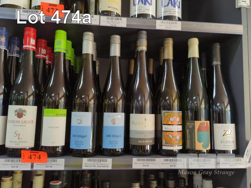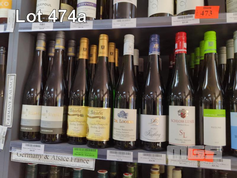 IMPORTED RIESLING ETC (1 X SHELF) 6 X 2021 WAGNER STEMPEL RIESLING TROCKEN 750ML 5 X 2018 WILLI SCHAEFER GRAACHER DOMPROBST SPATLESE #10 RIESLING 750ML 3 X 2021 DR LOOSEN WEHLENER SONNENUHR RIESLING KABINETT 750ML 3 X 2021 DR LOOSEN DR L RIESLING DRY 750ML 6 X 2020 WITTMANN ESTATE 100 HUGEL RIESLING TROCKEN 750ML 6 X 2018 WEINGUT WINTER RIESLING 750ML 2 X 2021 WAGNER STEMPEL GRUNER SILVANER 750ML 4 X 2020 MARCEL DEISS "COMPLANTATION" ALSACE 750ML 1 X 2020 DOMAINE OSTERTAG RIESLING "LES JARDINS" 750ML