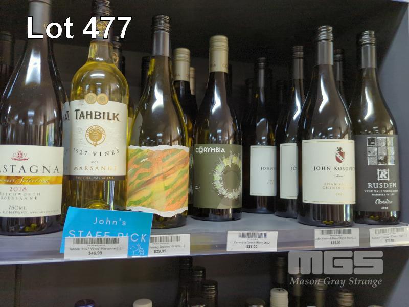 ASSORTED WHITE VARIETALS & BLENDS VERMENTIO, SAVIGNAN, BIANCO, MARSANNE, ROUSANNE, CHENNIN ETC (2 X SHELVES) 3 X 2021 MAC FORBES ALIGOTE 750ML 1 X 2020 LS MERCHANTS VERMENTINO 750ML 6 X 2022 SILENT NOISE MOFO BIANCO 750ML 2 X 2021 EVAN EVANS BAROSSA BIANCO 750ML 5 X 2022 STONEY RISE SAVAGNIN 750ML 1 X 2015 KANGARILLA ROAD "THE VEIL" SAVAGNIN 750ML 2 X 2020 AMATO VINO SPACE GIRL SAVAGNIN 750ML 6 X 2021 LEKO SAVAGNIN 750ML 1 X 2018 POWELL & SONS BAROSSA VALLEY MARSANNE 750ML 2 X 2020 POWELL & SONS BAROSSA VALLEY MARSANNE 750ML 1 X 2020 MICHAEL HALL ROUSSANNE 750ML 1 X 2020 YANGARRA OVITELLI BLANC 750ML 4 X 2019 YANGARRA "ROUX BEAUTE" ROUSSANNE 750ML 4 X 2020 YANGARRA "ROUX BEAUTE" ROUSSANNE 750ML 5 X 2016 CASTAGNA GROWERS SELECTION ROUSSANNE 750ML 3 X 2022 RUSDEN "CHASING DAISIES" GRENACHE BLANC ROUSSANNE 750ML 3 X 2022 CORYMBIA CHENIN BLANC 750ML 5 X 2021 JOHN KOSOVICH MARA CHENIN BLANC 750ML 7 X 2022 RUSDEN "CHRISTIAN" CHENIN BLANC 750ML