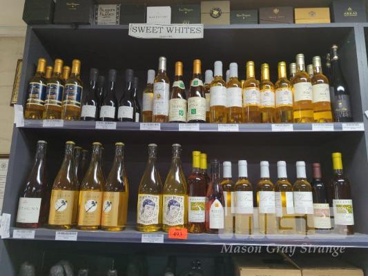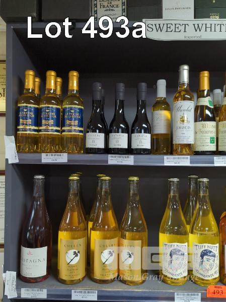 INTERNATIONAL & AUSTRALIAN SWEET WHIITE WINE AND SOME COLOURED ONES (2 X SHELVES) 5 X 2018 LE TERTRE DU LYS D'OR SAUTERNES 375ML 1 X 2018 CHARLES HOURS JURANCON MOELLEUX "UROULAT" 375ML 4 X 2019 DOMAINE DES BERNARDINS MUSCAT BEAUME DE VENISE 375ML 16 X 2017 CHATEAU LA CAUSSADE SAINTE CROIX DU MONT 375ML 12 X PRIMITIVO QUILES MOSCATEL 375ML 5 X 2018 TELMO RODRIGUEZ MR MOUNTAIN WINE MOSCATEL 500ML 4 X 2017 ROYAL TOKAJI COMPANY LATE HARVEST 500ML 1 X 2017 CASTAGNA ALLEGRO PET NAT 750ML 6 X 2021 CULLEN ROSE MOON PET NAT 750ML 3 X 2022 DELINQUENTE "TUFF NUT" PET-NAT BIANCO 750ML 1 X 2008 ROCKFORD "CANE CUT" BAROSSA VALLEY SEMILLON 375ML 2 X 2010 ROCKFORD "CANE CUT" BAROSSA VALLEY SEMILLON 375ML 1 X 2012 ROCKFORD "BASKET PRESS" BAROSSA VALLEY SHIRAZ 375ML 1 X 2003 SEVENHILL CLARE VALLEY BOTRYTIS SEMILLON