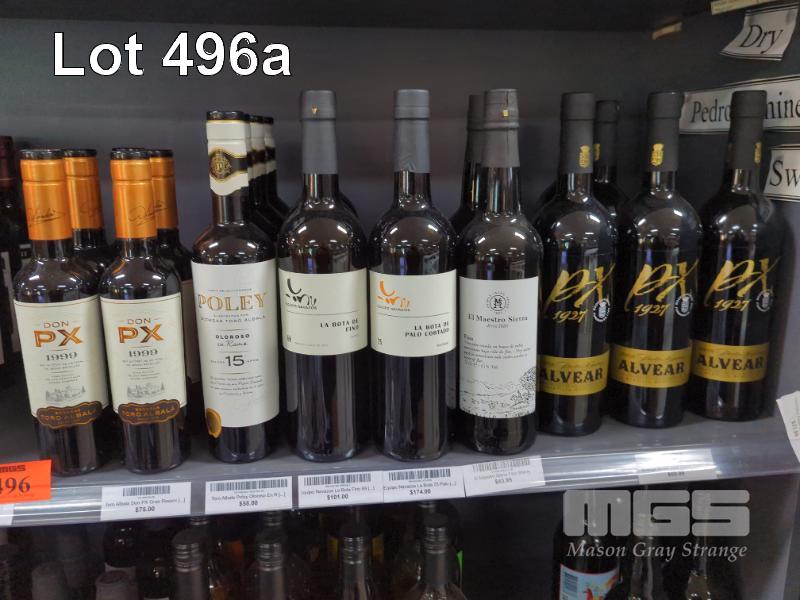 ASSORTED SHERRY, MANZANILLA , MARSALA , APERA ETC LOCAL AND IMPORTED (2 X SHELVES) 11 X PENNYWEIGHT "CONSTANCE" FINO 375ML 11 X PENNYWEIGHT "WOODY'S" AMONTILLADO 375ML 11 X PENNYWEIGHT "LA SERENA" OLOROSO 375ML 5 X 2020 SILENT NOISE "CLOUDY BUT FINE" PRIMOTIVO UNDER FLOR 750ML 5 X 1999 TORO ALBALA DON PX GRAN RESERVA 375ML 4 X TORO ALBALA POLEY OLOROSO EN RAMA 15-ANOS NV 500ML 3 X EQUIPO NAVAZOS LA BOTA FINO 68 "MACHARNUDO ALTO" 750ML 1 X EQUIPO NAVAZOS LA BOTA 75 PALO CORTADO SANLUCAR 750ML 2 X EL MAESTRO SIERRA FINO SHERRY 750ML 5 X 1927 ALVEAR PEDRO XIMENEZ SHERRY 750ML 11 X DELGADO ZULETA "LA GOYA" MANZANILLA 375ML 10 X BODEGAS DE HIJOS DE RAINERA PÉREZ MARÍN "LA GUITA" MANZANILLA 375ML 5 X EQUIPO NAVAZOS "I THINK" MANZANILLA 375ML 7 X BODEGAS BARRERO "GABRIELA" MANZANILLA 375ML 5 X KRISTALANA DRY APERA 750ML 7 X KRISTALANA MEDIUM APERA 750ML 4 X KRISTALANA CREAM APERA 750ML 7 X KRISTALANA SWEET APERA 750ML 6 X BORONIA MARSALA 750ML