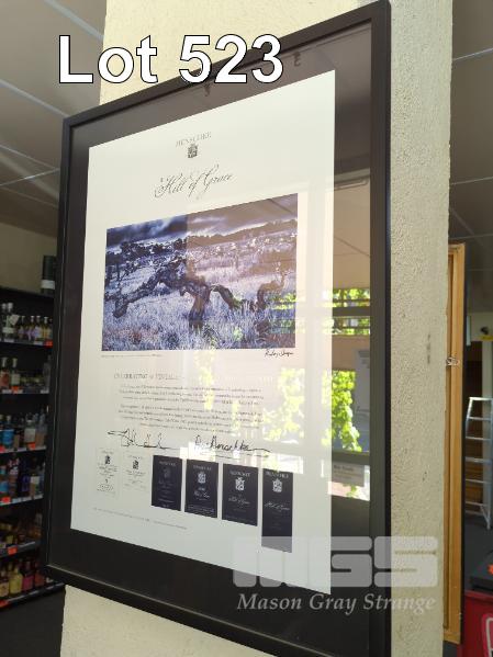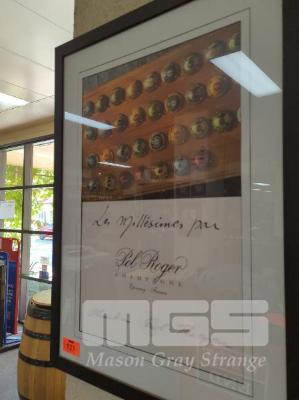 2 X PIECES OF WINE WALL ART. HENSCHKE HILL OF GRACE POSTER FRAMED & GLAZED AND CHAMPAGNE POSTER FRAMED & GLAZED.