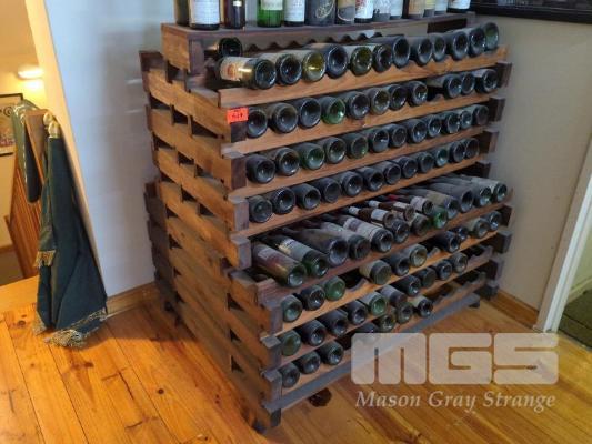 SUBSTANTIAL RUSTIC WOODEN WINE RACK.