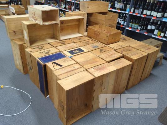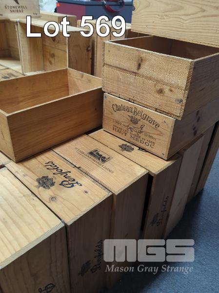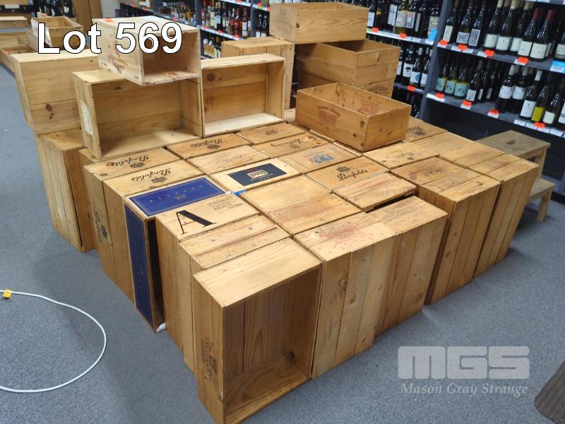 QUANTITY OF BRANDED WOODEN WINE CRATES. SHOP WIDE. NOTE: ONLY AVAILBLE FOR COLLECTION AFTER CONTENTS.