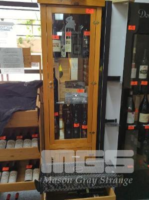 TIMBER & GLASS WINE DISPLAY UNIT WITH KEY