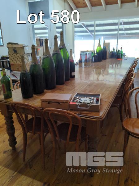 SUBSTANTIAL 20-SEAT TIMBER DINING TABLE WITH 20 X BENTWOOD CHAIRS. 4,870 X 1,350 MM