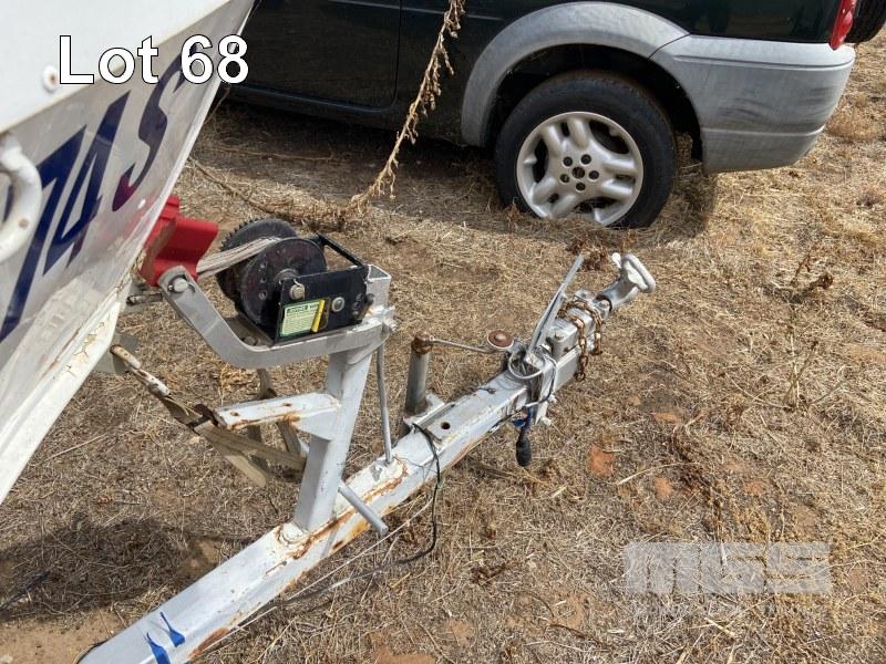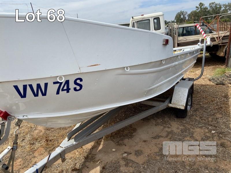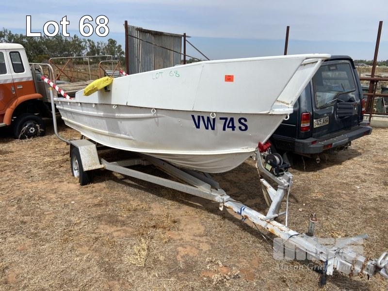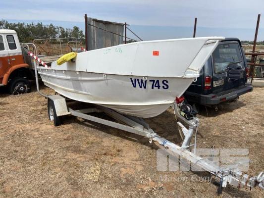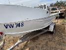ALUMINIUM BOAT, APPROX 12' REG: VW74S NO MOTOR ON SINGLE AXLE TRAILER 50mm HITCH & HAND WINCH