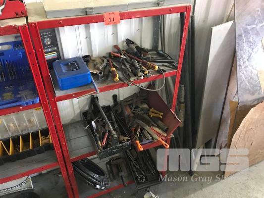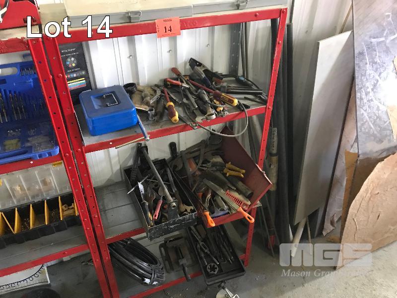 STEEL SHELF UNIT & CONTENTS INC TAP & DIE SETS, HAND TOOLS & MACHINIST VICE
