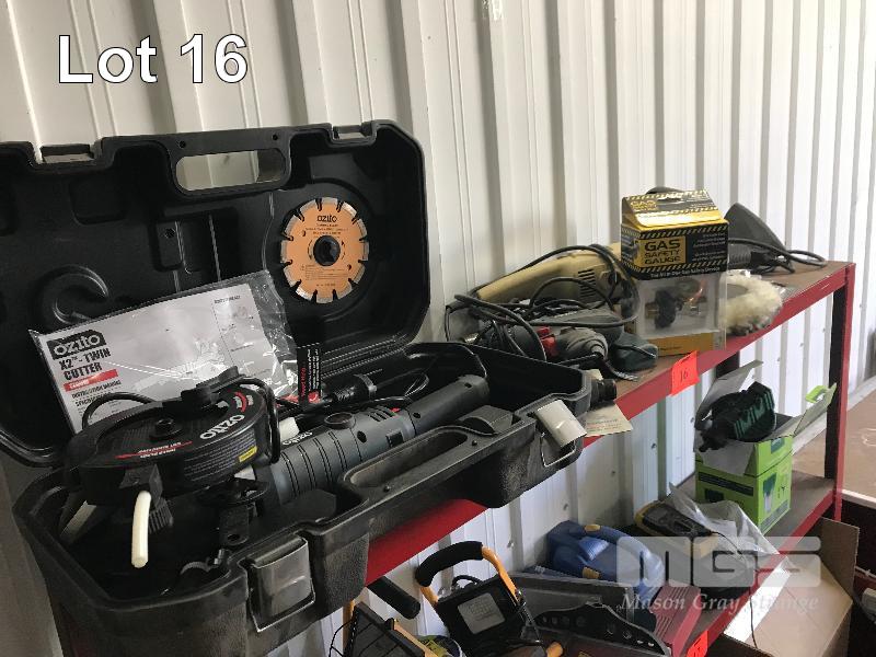 OZITO X2 TWIN CUTTER, ROCKWELL BUFFER, PAR FLOODLIGHT, HARDWARE, ETC 1 x SHELF