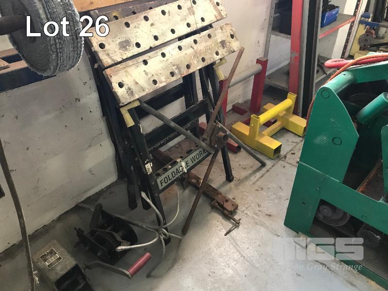 2 x MANUAL CABLE WINCHES, 2 x FOLDING WORK HORSES, 2 x CABLE SPOOL STANDS, ETC