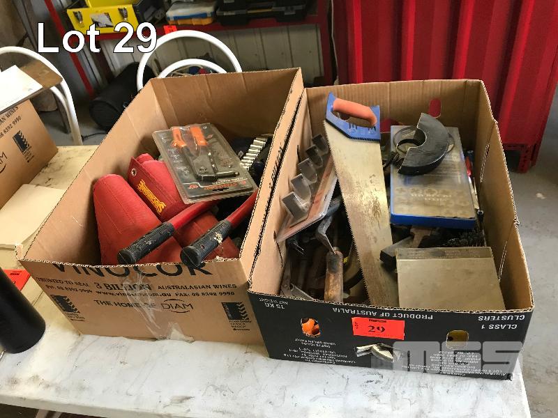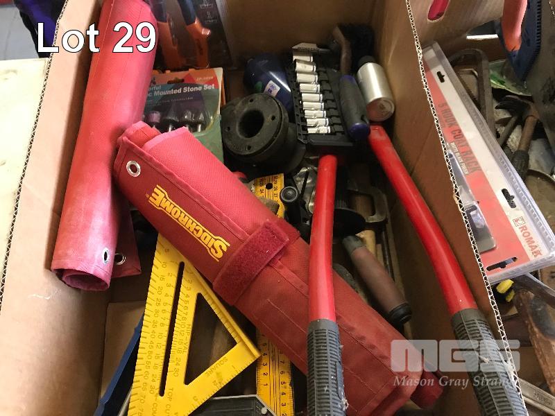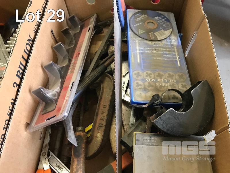 SAWS, TAP & DIE SETS, POP RIVET GUN, SOCKET SET, 2 x SIDCHROME FABRIC SPANNER HOLDERS, 2 x BOXES