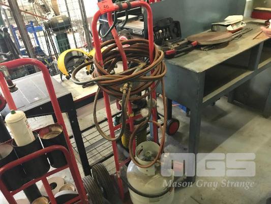 WELDING TROLLEY INC 9kg GAS BOTTLE, HOSES, GAUGES & HAND PIECE
