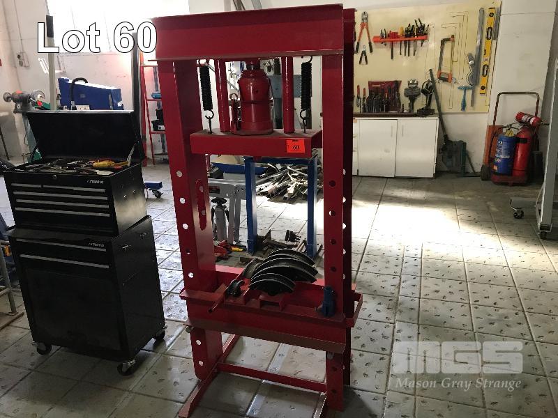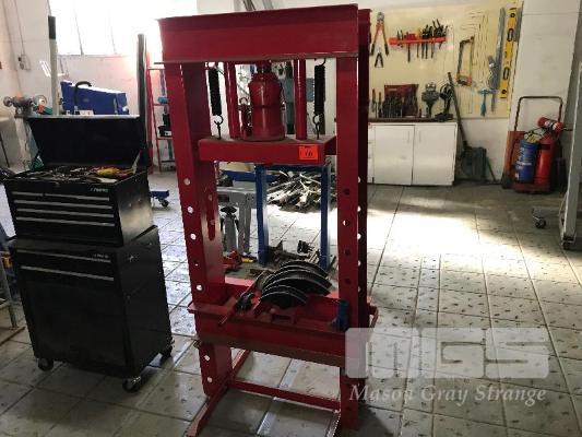 HYDRAULIC GARAGE PRESS, 30 TONNE BOTTLE JACK, 5 X ASSORTED FORM TOOLING ATTACHMENTS, PARAMOUNT BROWNS, MANUAL OP