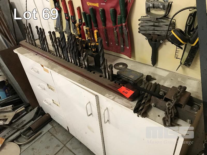 COLLECTION TAPERED DRILL BITS IN HARDWOOD BLOCK HOLDER