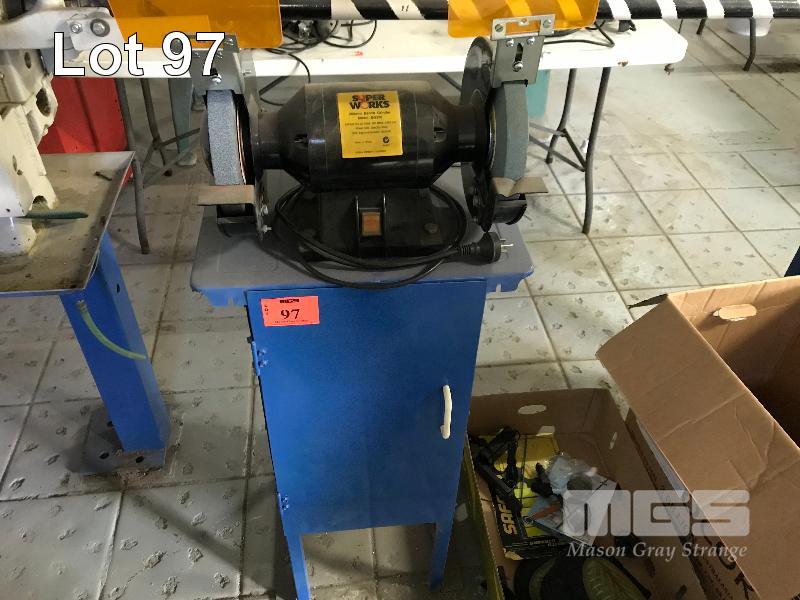 SUPERWORX DE BENCH GRINDER ON SINGLE DOOR STORAGE CUPBOARD