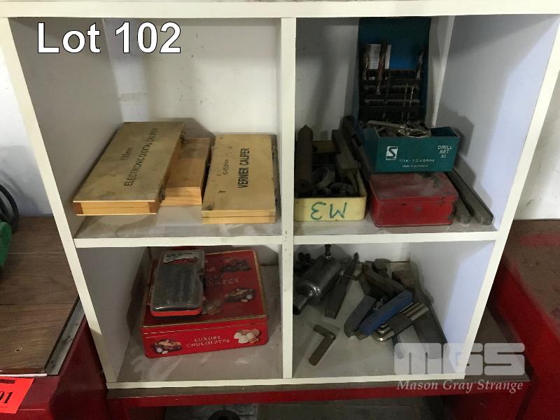 ASSORTED METROLOGY & TOOLING, VERNIER CALIPER, SOCKET SET, ALLANKEYS, DRILL BITS, MILLING CUTTER, ETC