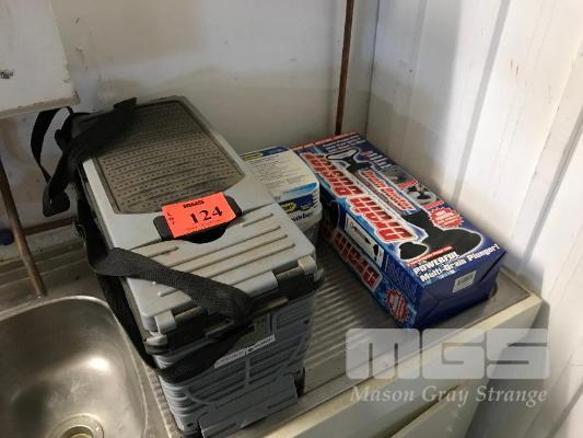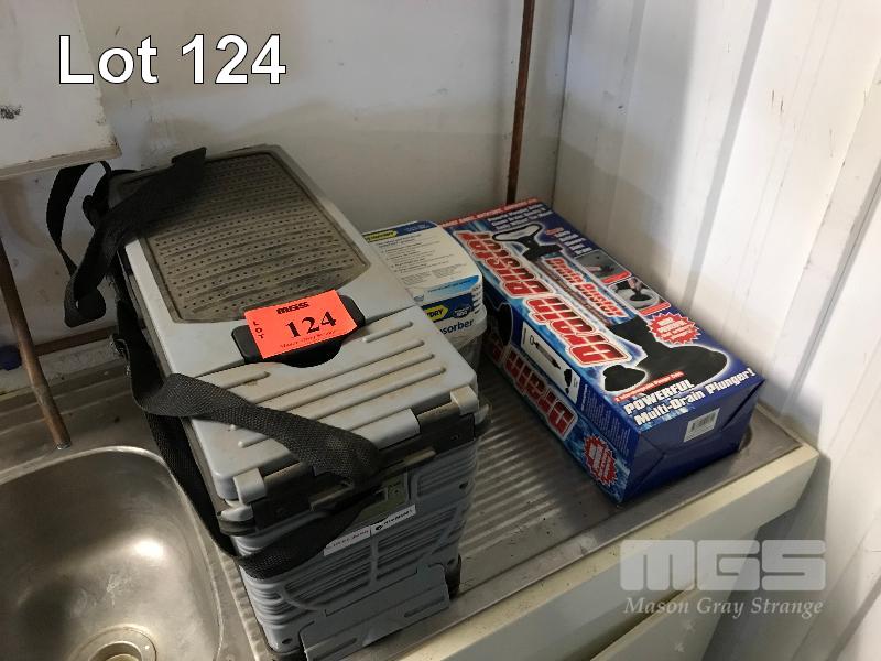 SMALL PORTABLE CAR REFRIGERATOR, DRAIN BUSTER ETC