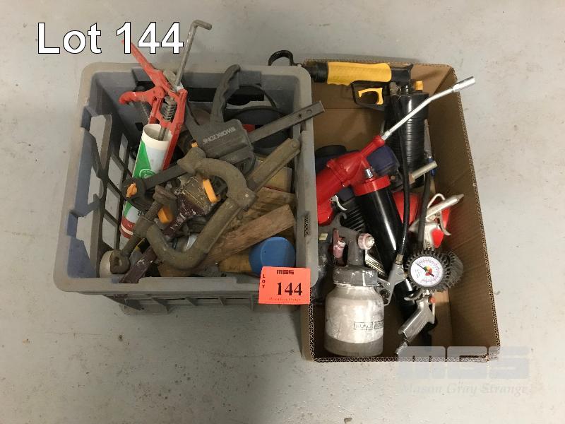 ASSORTED HANDTOOLS, PNEUMATIC TOOLS, CLAMPS ETC