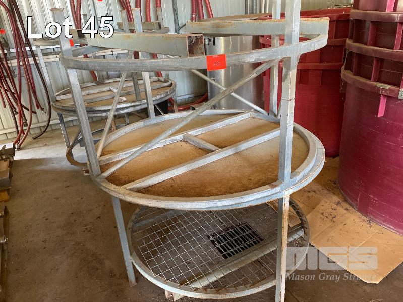 2 x CIRCULAR STEEL FERMENTER STANDS, 1500m DIAMETER, APPROX