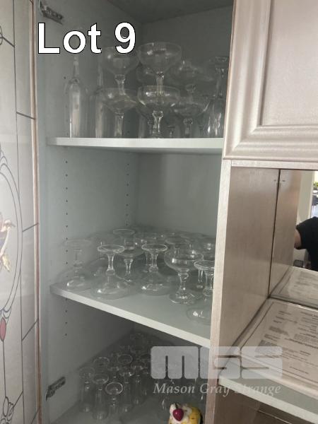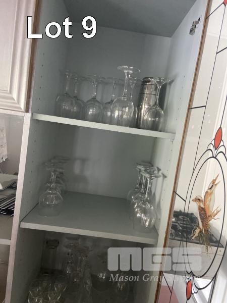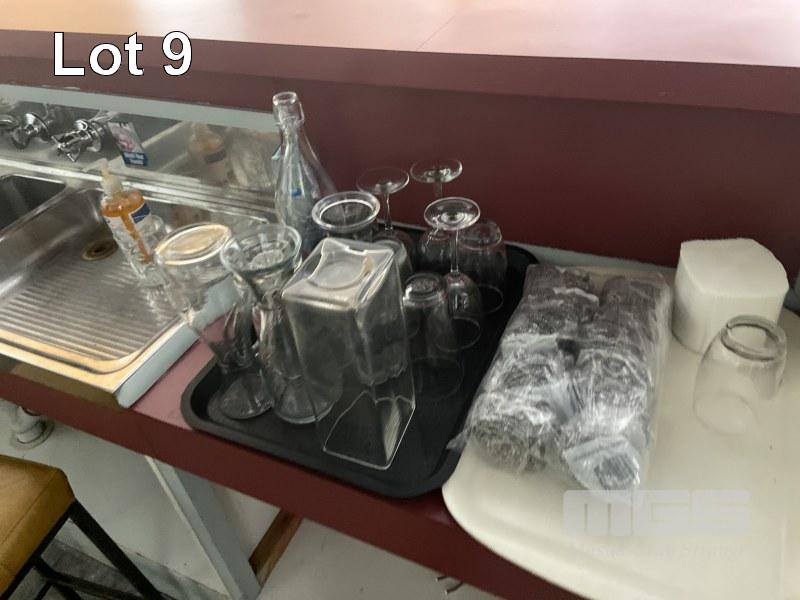 WINE & CHAMPAGNE GLASSES, ETC, CONTENTS BEHIND BAR & DETERGENTS