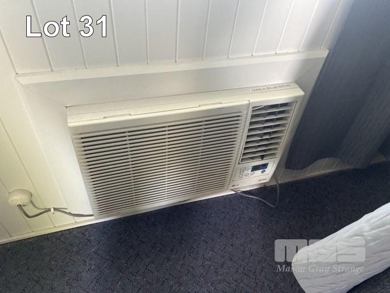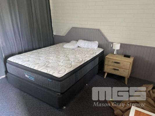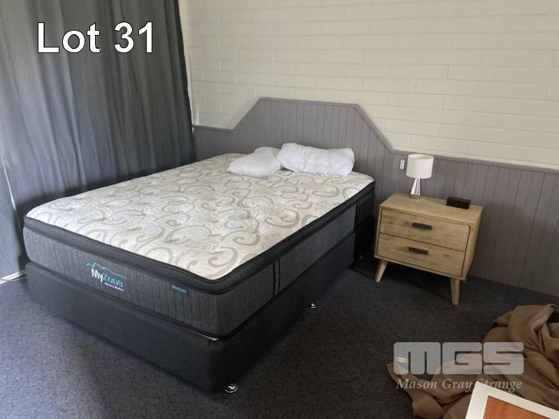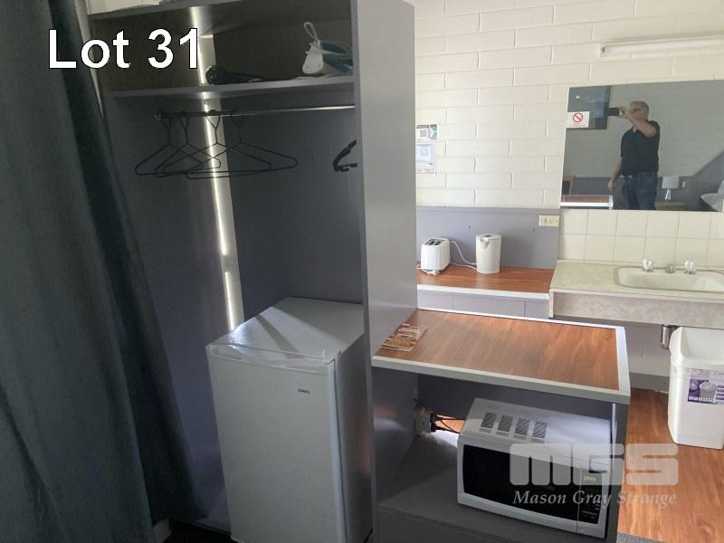 ROOM 4 CONTENTS DOUBLE BED, BAR FRIDGE, MICROWAVE, TOASTER & KETTLE, AVA 32" TV WITH REMOTE MOD: 32SSI SIDE TABLE, 2 x CHAIRS & COFFEE TABLE LG WALL MOUNT A/C, IRON & BOARD