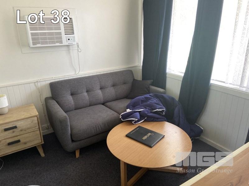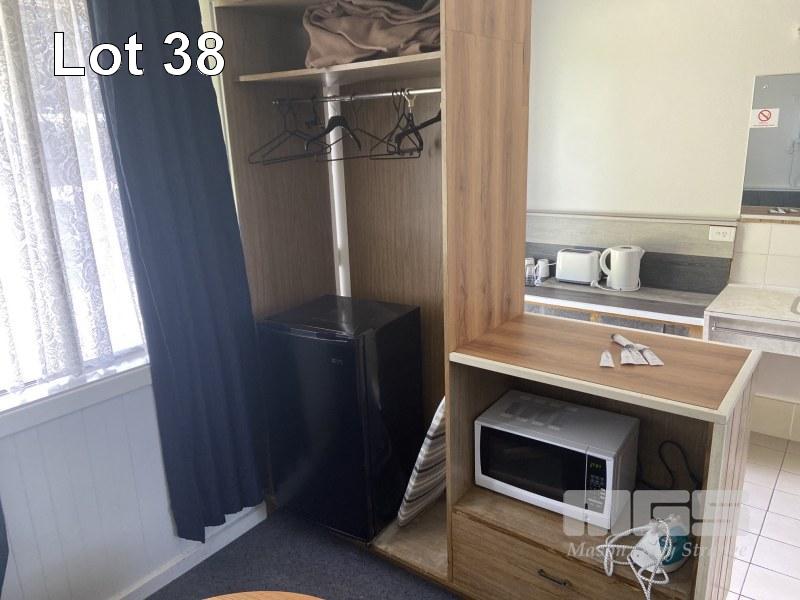 ROOM 10 CONTENTS DOUBLE BED, BAR FRIDGE, MICROWAVE, TOASTER & KETTLE, AVA 32" TV WITH REMOTE MOD: 32SSI SIDE TABLE, COUCH & COFFEE TABLE EUROMATIC WALL MOUNT A/C, IRON & BOARD