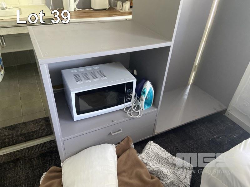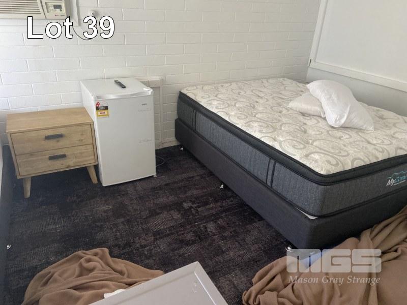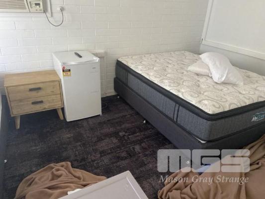 ROOM 11 CONTENTS DOUBLE & SINGLE BED, BAR FRIDGE, MICROWAVE, TOASTER & KETTLE, AVA 32" TV WITH REMOTE MOD: 32SSI SIDE TABLE, COUCH & COFFEE TABLE LG WALL MOUNT A/C, IRON & BOARD