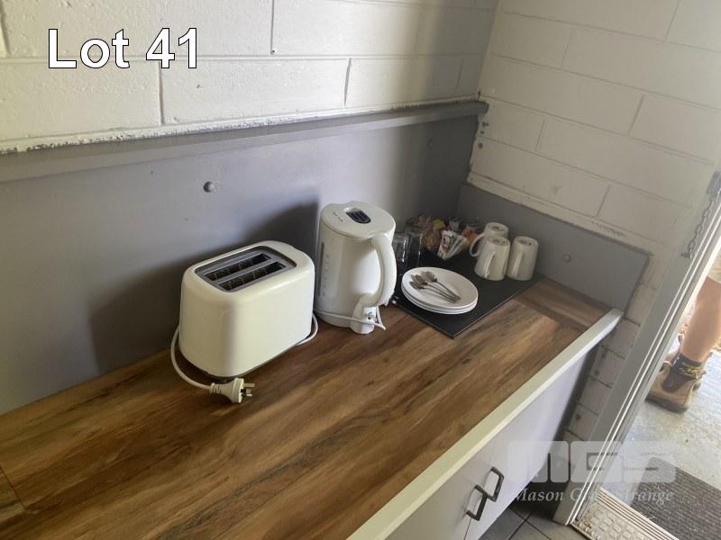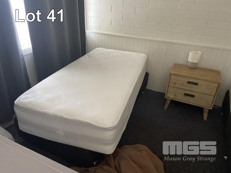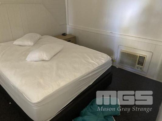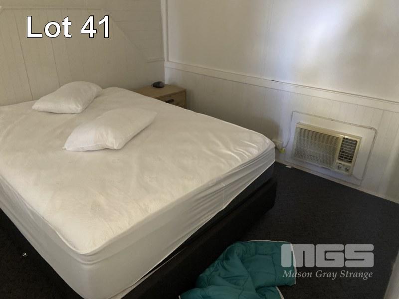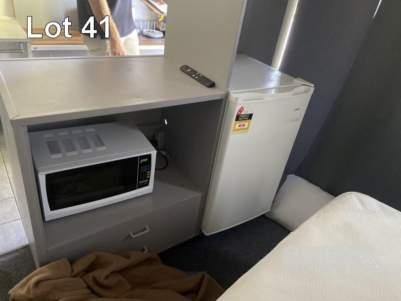 ROOM 14 CONTENTS DOUBLE & SINGLE BED, BAR FRIDGE, MICROWAVE, TOASTER & KETTLE, AVA 32" TV WITH REMOTE MOD: 32SSI SIDE TABLE, COUCH & COFFEE TABLE WALL MOUNT A/C, IRON & BOARD